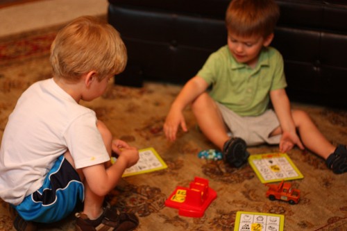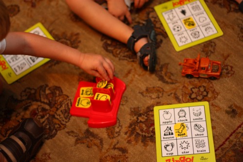 The boys and I decided to play their favorite game: Zingo! If you don’t own this game…you need to! It’s one of my absolute favorite ‘board’ games for kids!