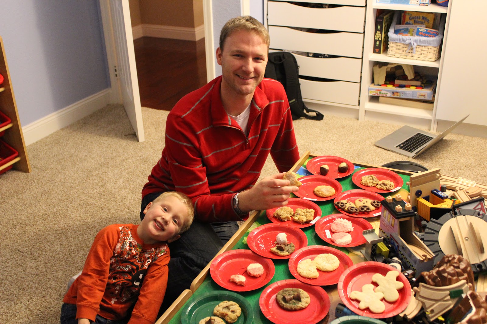 Even though my sister and I are both grown, my mom still makes holiday baking a big part of our family traditions. Each year we plan a day to get together and bake all day. Sine we live 2-3 hrs apart, it takes some work but it always so much fun. We each plan ingredients for 2 or 3 special treats, double all the recipes and split them 3 ways. Its extra fun now that my 3 year old can help! And when he’s tired in the kitchen, he gets special time with Grandpa and Dad.