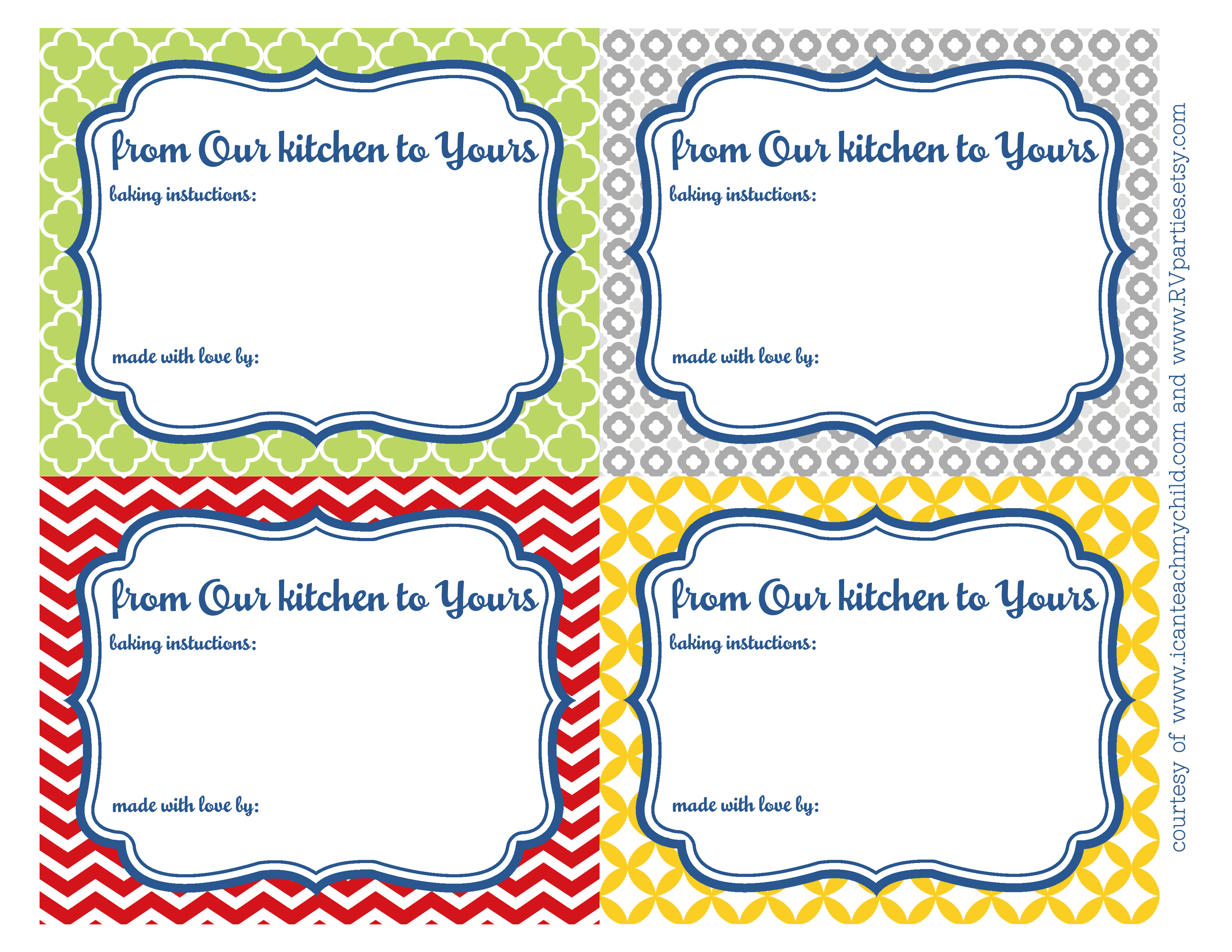 I thought it would be fun to have some cute tags to attach to homemade meals that include any baking instructions that might be needed, so I asked my friend Rachel over at RV Parties to whip up this super-cute ‘From Our Kitchen to Yours’ Printable! Just click on the picture below and print!
