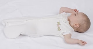 Convertible Woombie has openings for the arms with optional snaps. This way, once your baby begins to roll over you can still use the Woombie by allowing the baby’s arms to be free (this is the one we reviewed).