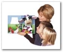 There are currently four different characters in the puppet show playset series: Diggity the Dog, Frenchie the Frog, Percilla the Gorilla, and Scooter the Cat. The puppet show playsets also come with a DVD of Lisa Leleu, a captivating and engaging storyteller, interacting with the puppets and reading the story. Each book comes with the book, the removable hand puppet, the story book to read, the story book to write, color & illustrate, 1 package of crayons, and a 45-minute DVD of the author acting out the puppet while reading each book.