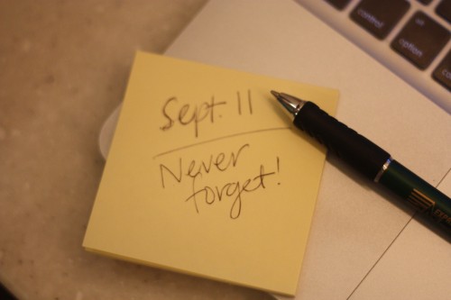 I remained in the commons area, watching the coverage until after lunch when we were then instructed to go back to class, as if everything was business as usual. The only other thing I remember about the school day was that a classmate of mine was wearing a rhinestone-covered t-shirt of the twin towers. Ironic and so terribly sad.