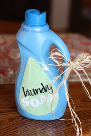 The idea for making this homemade liquid laundry soap was born in the throes of Financial Peace University as a way to cut down on our monthly expenses. After using it exclusively for over 8 months, we are now alternating one week with the homemade stuff and one week with the store-bought stuff because our whites just weren’t staying as white as we hoped. My husband wears a suit and tie to work every day (and often a white-collared shirt), so our un-white whites were a major problem for us. But it still has made a HUGE difference in the amount of money we spend on laundry detergent!