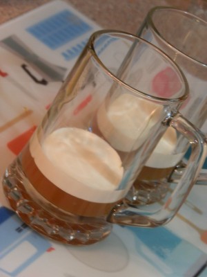 For the Butterbeer, simply put a tablespoon of butterscotch sauce and ½ tablespoon of double cream into each mug.